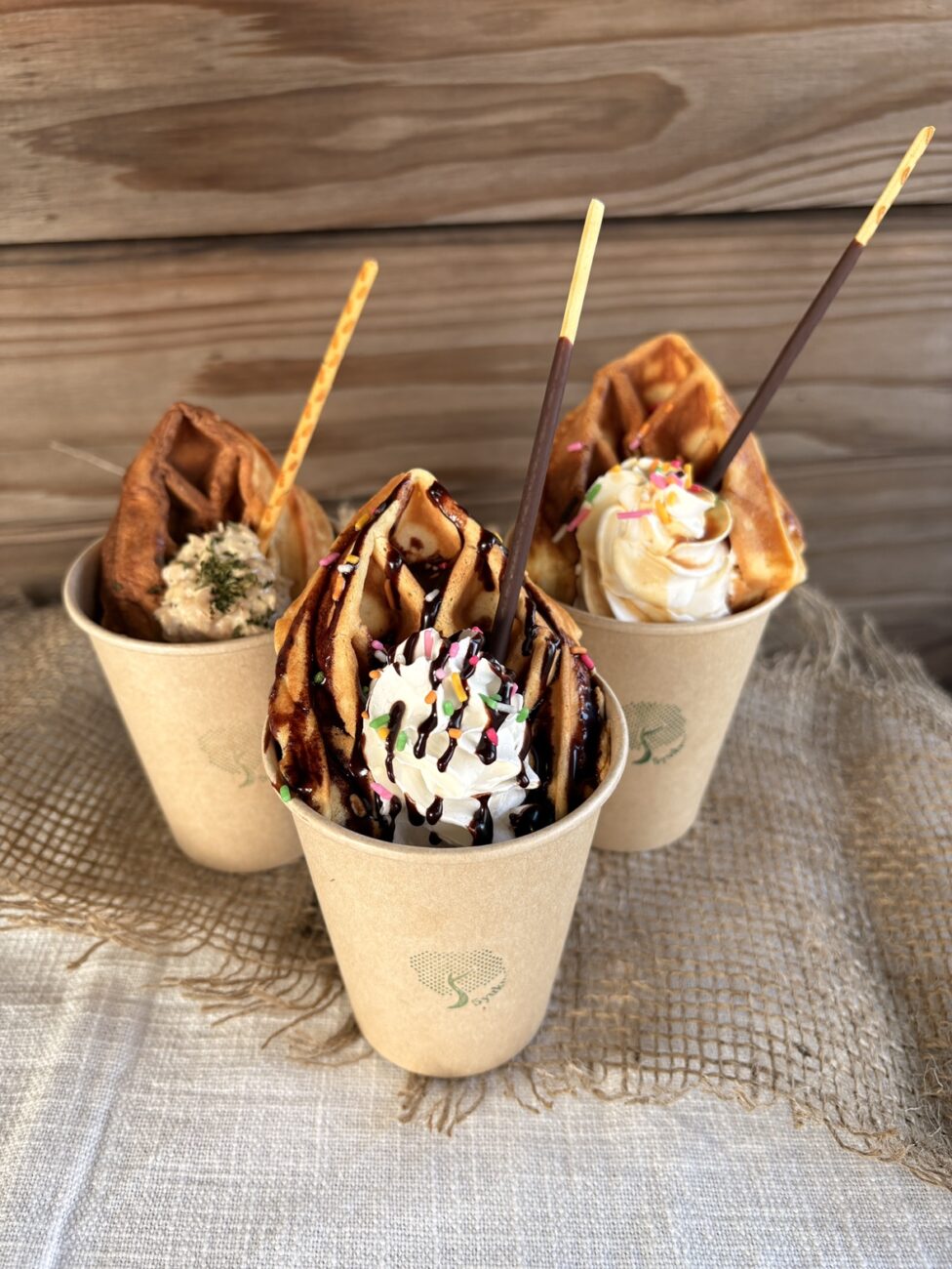 5yukuri CAFEでは、店舗で子供から大人まで大人気のワッフルを、イベント限定で【盛り盛り】にアレンジ!ふんわり食感と贅沢なトッピングで、食べれば気分も大漁間違いなしです!